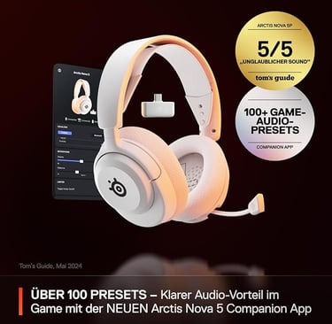 SteelSeries Arctis Nova 5 Wireless - Gaming Headset- Multi-System -PC,PS5 Magnetische Neodym-Treiber -Über 100 Audio Presets - 60H Akkulaufzeit - 2,4 GHz oder BT-ClearCast Gen2.X-Mik